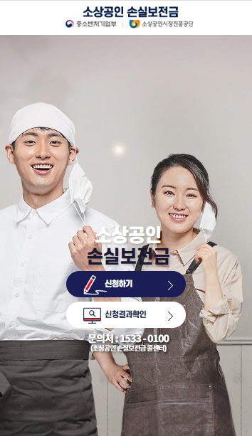 신청사이트 접속(소상공인손실보전금.kr) -[신청결과확인]- 유의사항 확인 후