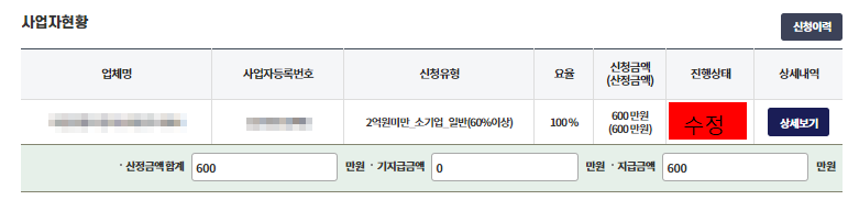 ✅ 결과화면에서 사업자현황의 상세보기에 들어간다.