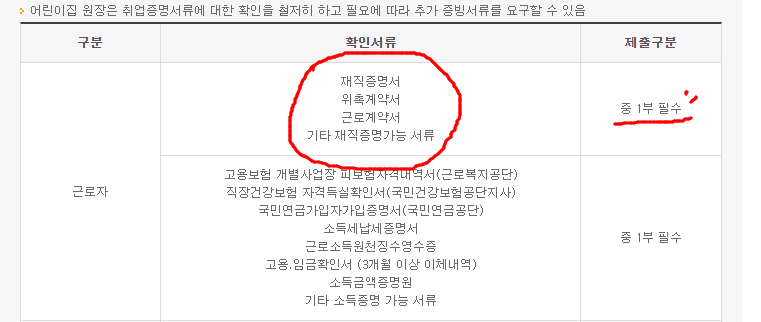 국공립은 재직을 확실히 확인하기 위해 입소확정할때, 입소하는 날 두번 제출을 요청합니다