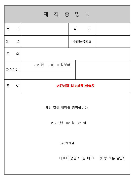 재직증명서 양식